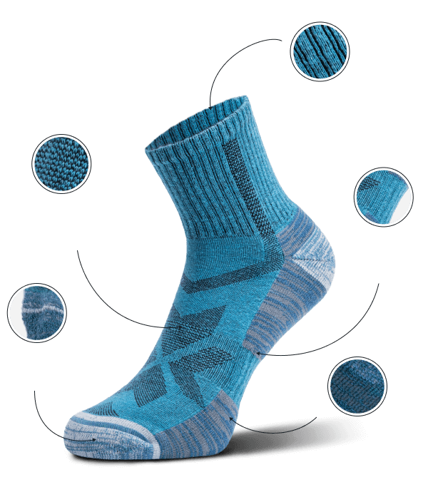 Każdy szlak ma swoje własne warunki, a Twoje skarpetki powinny do nich pasować. Niezależnie od prognozy pogody, nasze skarpetki trekkingowe zapewniają odpowiednie dopasowanie, oddychalność i wsparcie, abyś mógł komfortowo poruszać się od początku szlaku aż na szczyt.